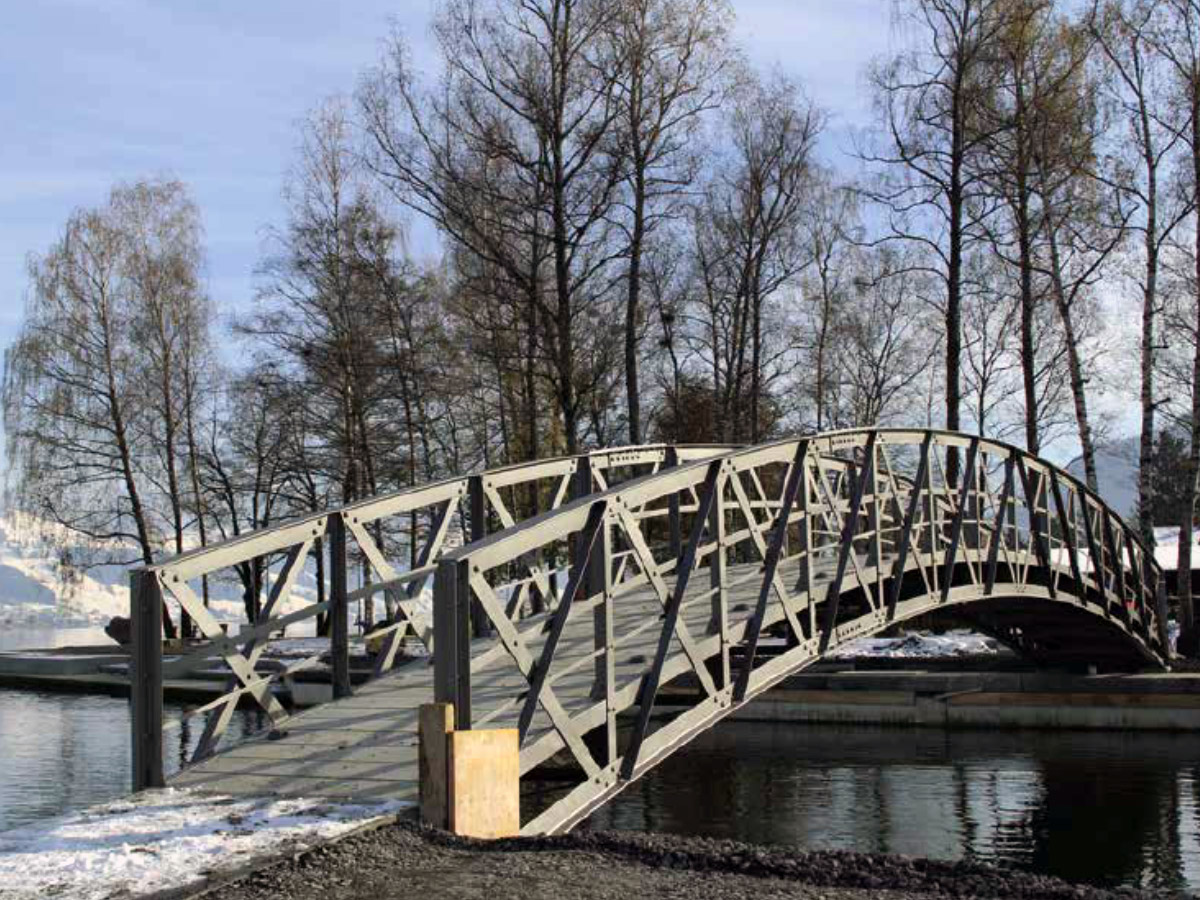 Bogenbrüggli, Unterägeri, genietetes Stahltragwerk mit Platten in mit Carbon vorgespannten hochfesten Betonplatten
